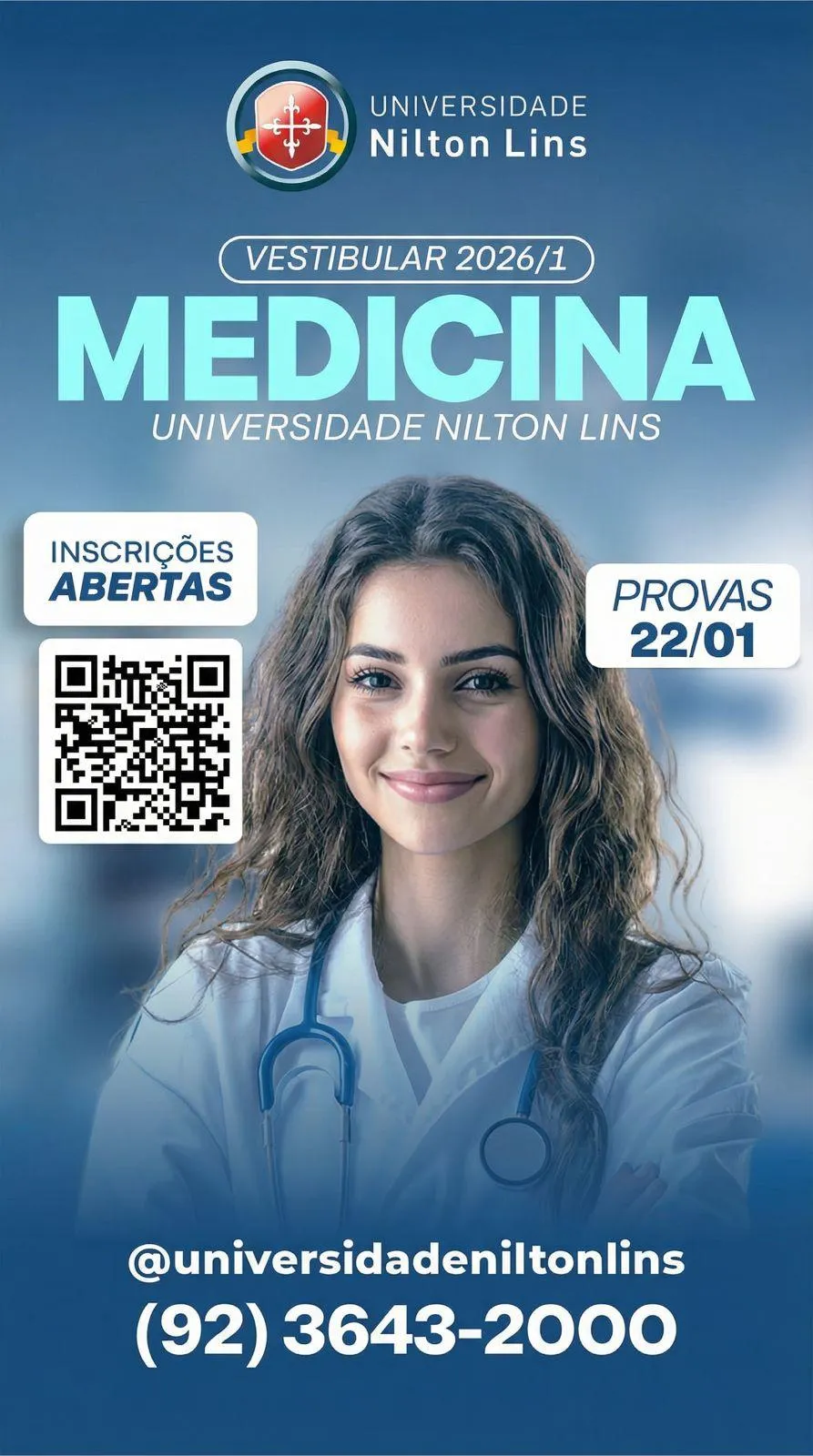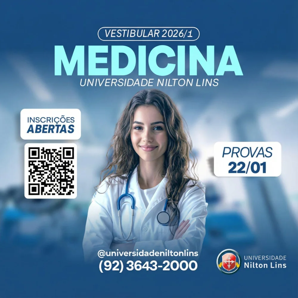 Quer ingressar no curso de Medicina da Universidade Nilton Lins? Essa é a sua oportunidade! Estão abertas as inscrições para o Processo Seletivo de Medicina 2026.1. As inscrições vão até o dia 21 de janeiro de 2026.